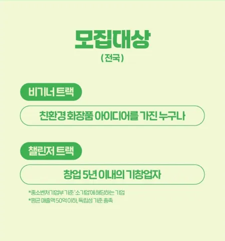 챌린저 트랙 : (화장품 관련) 창업 5년 이내의 기창업자