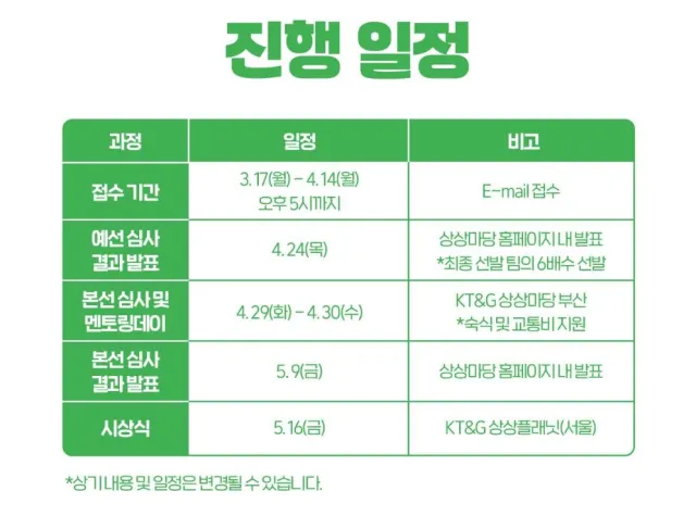 2025년 KT&G 상상마당 코코챌린지 공고 세부사항