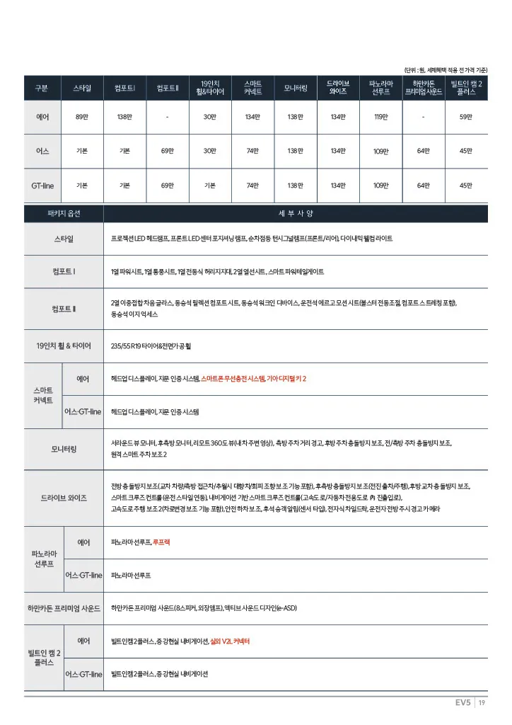 기아 ev5 옵션표