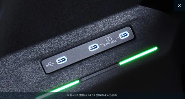 충전 편의: 1열에 100W C타입 USB 단자 2개와 충전 케이블이 추가되었습니다.