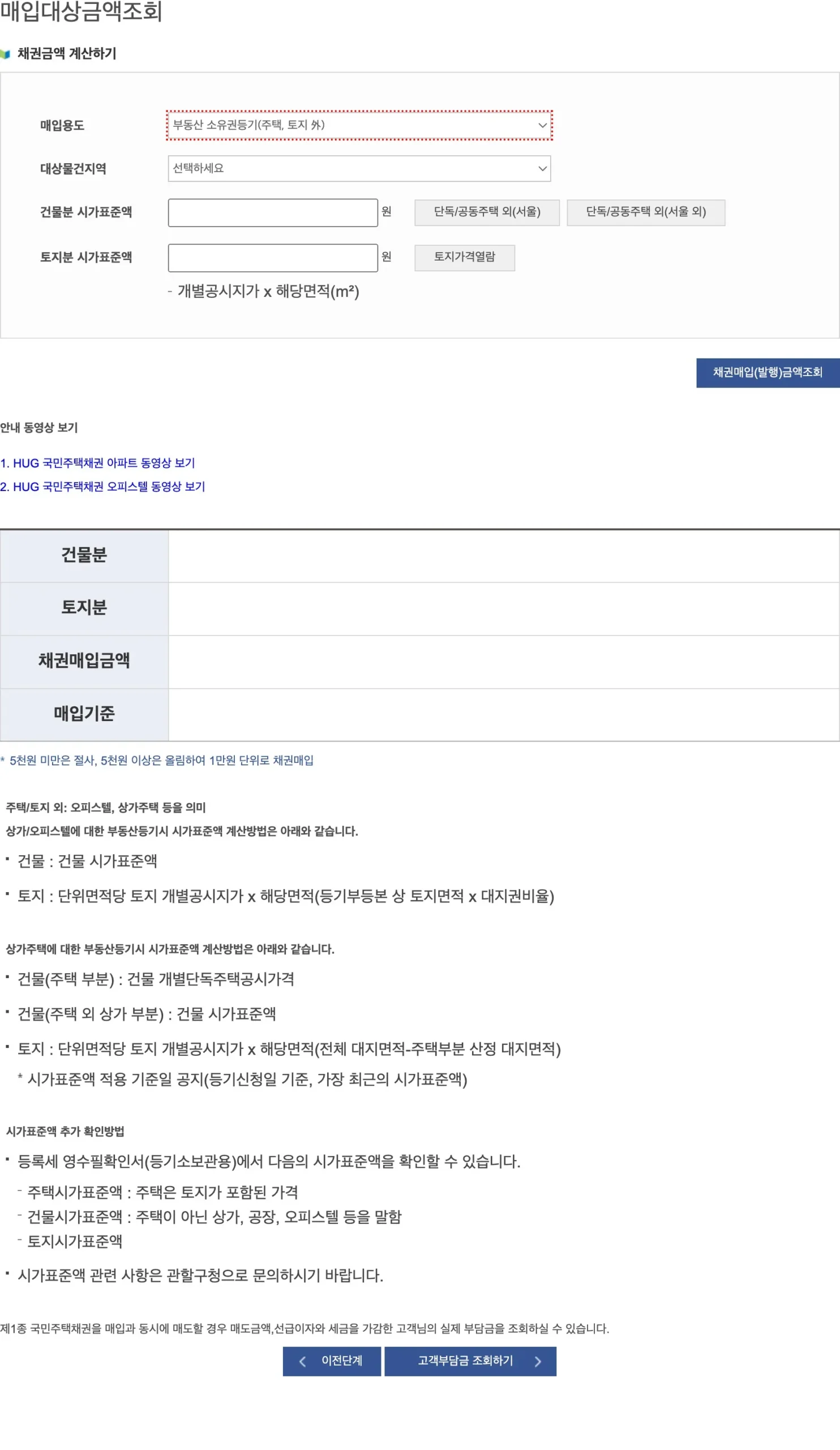 2. 주택도시기금 포털에서 매입 금액 조회 (계산기 사용)
